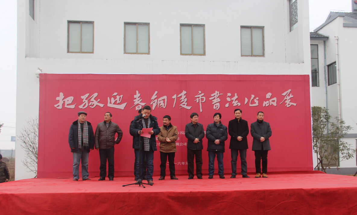 开幕式由市文联主席李云主持,安徽缘酒集团董事长、安徽缘酒文化博物馆馆长黄晔,铜陵市书协主席姚时进,枞阳县书协主席高耀庭,安庆市原书协主席余龙生分别致辞。