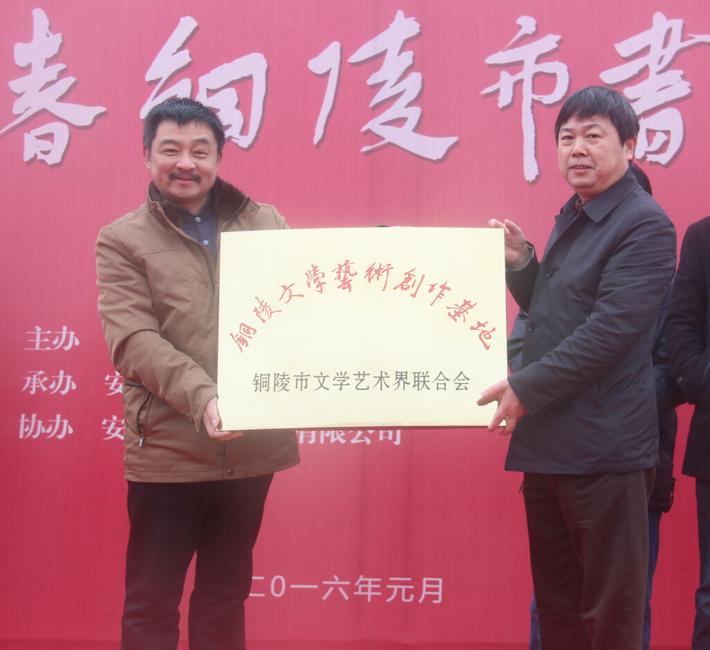 开幕式上,市委宣传部常务副部长李必胜还向安徽缘文化博物馆进行了“铜陵市文学艺术创作基地”授牌仪式。开幕式结束后,出席活动的领导和嘉宾们来到博物馆二楼参观此次书法作品展。