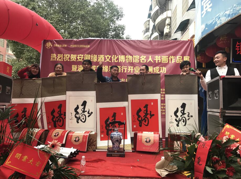 开业现场举行了精彩的文艺演出活动同时还有丰厚大奖抽取。现场氛围充分体现了安徽缘酒集团“以文化酿造美酒”的经营理念和“以文化决战市场”的信念。大家一边欣赏字画,一边询问活动政策,现场销售尊藏系列、年份系列、贵族缘酒等共千余件,火爆的现场订购充分体现了当地消费者对缘酒的大力支持和高度认可,同时也大大增加了经销商的信心。