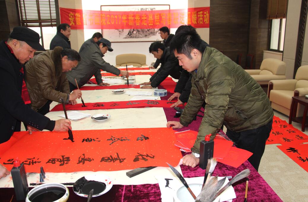 近年来,安徽省书画院响应党中央及省委宣传部、文化厅的号召,将书画创作与惠民生、接地气紧密结合,恪守走群众路线的宗旨,秉持文艺工作者“为人民服务”的精神,持续不断开展惠民工程的文化实践活动。