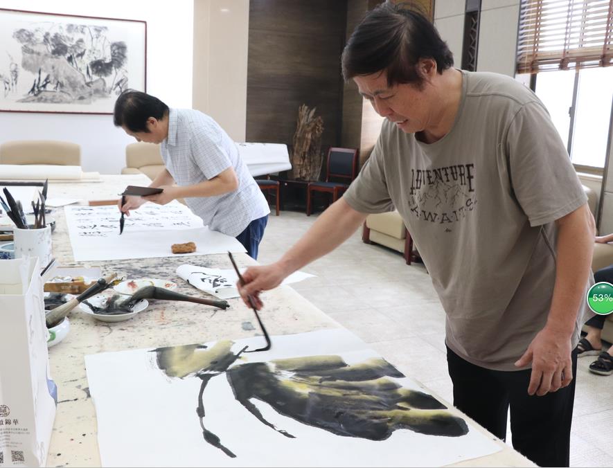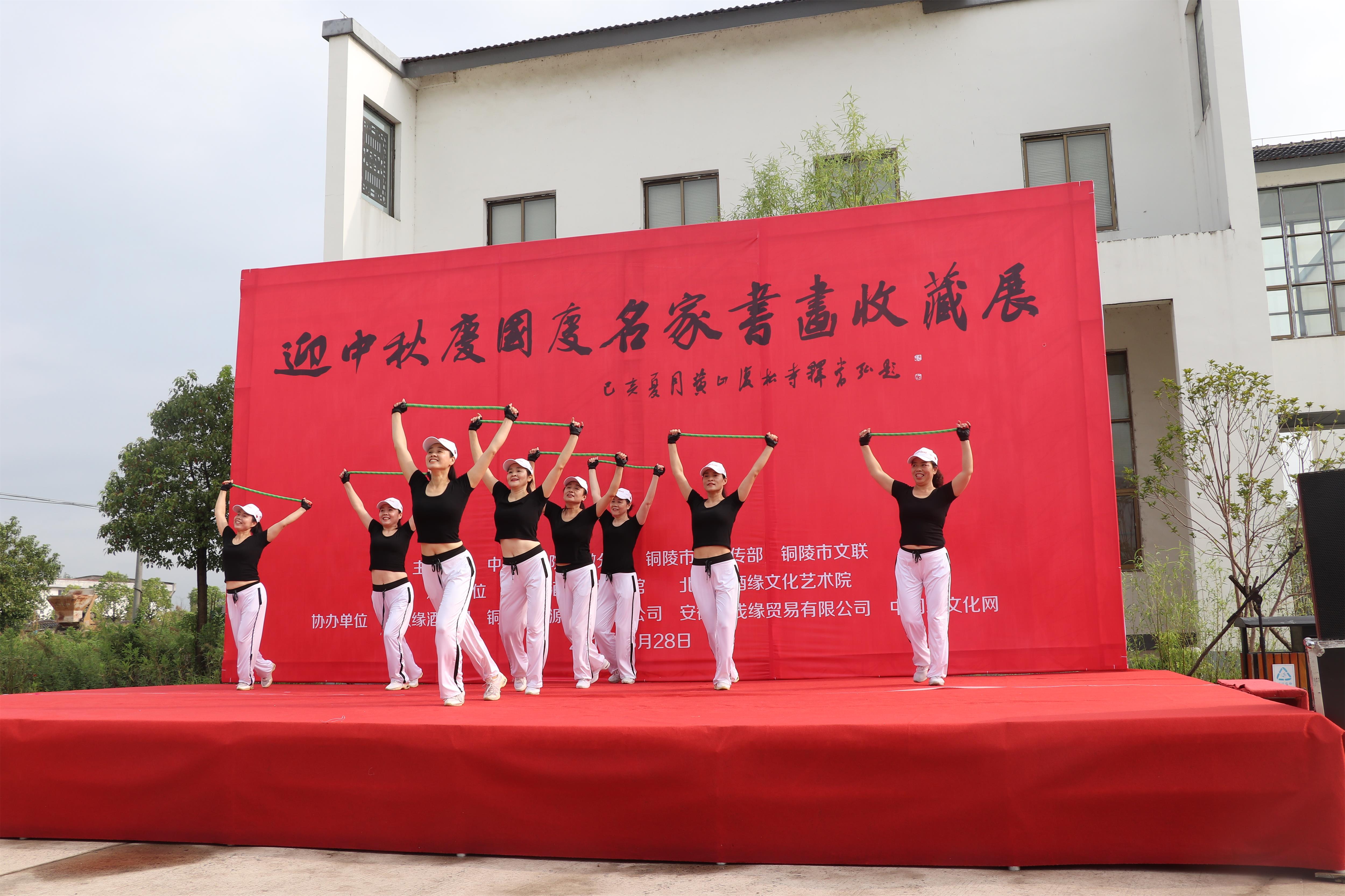 开幕式结束后,领导和嘉宾们先后到两个展厅欣赏参展作品,然后聚集到书画室,泼墨挥毫,或书或画,精彩纷呈。正如黄晔先生所以说,金秋是喜庆的季节,也是收获的季节,祝愿前来观赏的嘉宾、同仁在收获喜悦的同时,收藏一份属于自己的艺术佳作! 画展开展之前,安徽缘酒艺术团还进行了精彩的歌舞艺术表演。