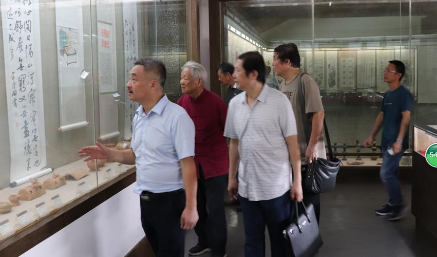 应邀出席今天书画名家展馆的领导和嘉宾有:中国书画院艺术顾问、中国书画院安徽分院名誉院长、著名书画家?郭公达先生,安徽省书法家协会副主席、中国书画院安徽分院副院长谢道佑先生,安徽省美术家协会原副主席、中国书画院安徽分院副院长张国琳先生,铜陵市政协原副主席 ?洪哲燮先生,中国书画院安徽分院艺委会主任?郭建军先生,中国书画院外联办主任、中国书画院安徽分院常务副院长兼秘书长欧阳德先生,安庆市书协原主席、安徽缘酒文化博物馆名誉馆长余龙生先生,中国宣纸协会副会长吴卫红先生,安徽省轻钢协会秘书长杨吉斌先生,泾县缘酒酒业有限公司总经理吴卫国先生,铜陵农民书画艺术馆黄国权先生。