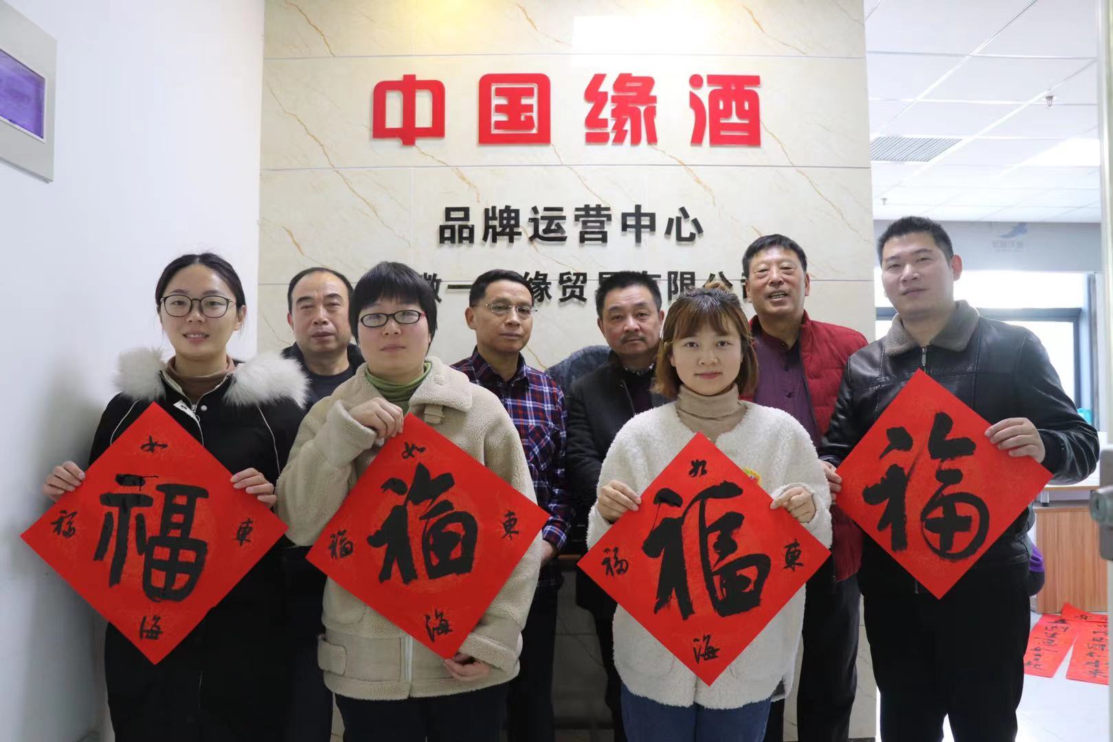 1月29日上午,实力派书法家黄书权一行来中国缘酒品牌运营中心写春联。书法家们现场挥毫泼墨,一幅幅寓意美好、祝福缘酒企业发展的对联在几位书法家的笔下熠熠生辉。为集团添上了一幅幅新春的暖意和一声声新春的祝福。