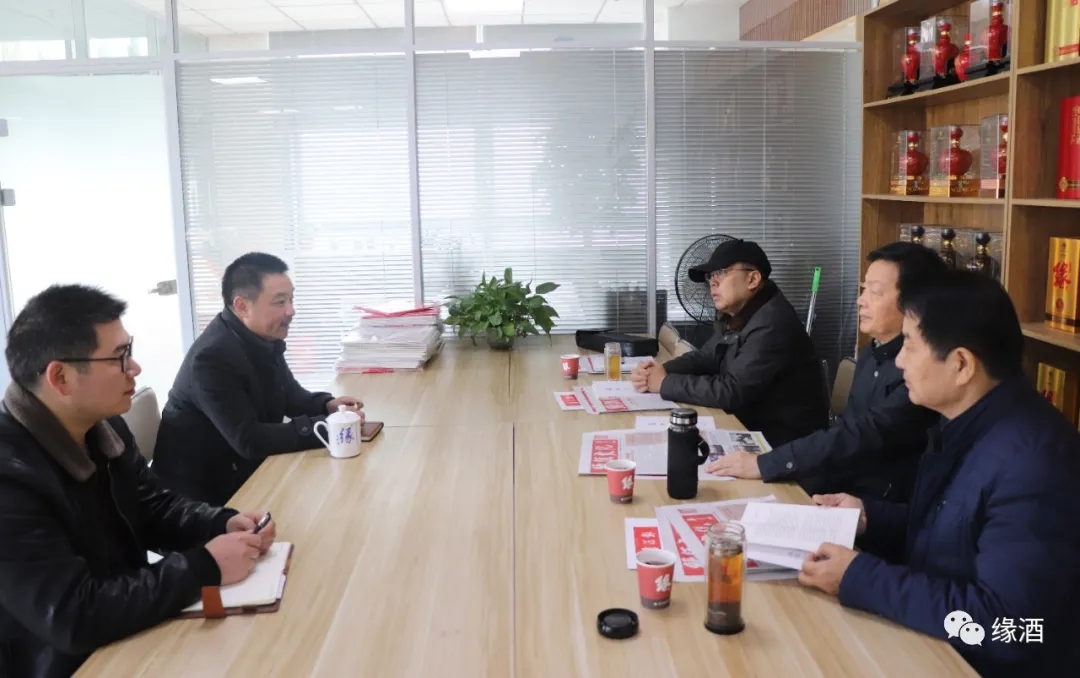 1月31日上午,安徽省书协副主席、合肥市政协原主席董昭礼,合肥市政协原秘书长袁文长,合肥市书画院副院长、合肥市书协副主席邵鑫一行做客中国缘酒品牌运营中心,缘酒创牌人、安徽缘酒文化博物馆馆长黄晔,市场总监荣秩五在会议室欢迎大家的到来。