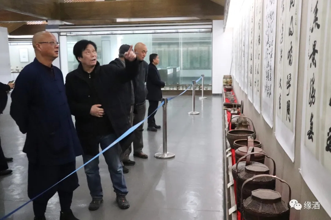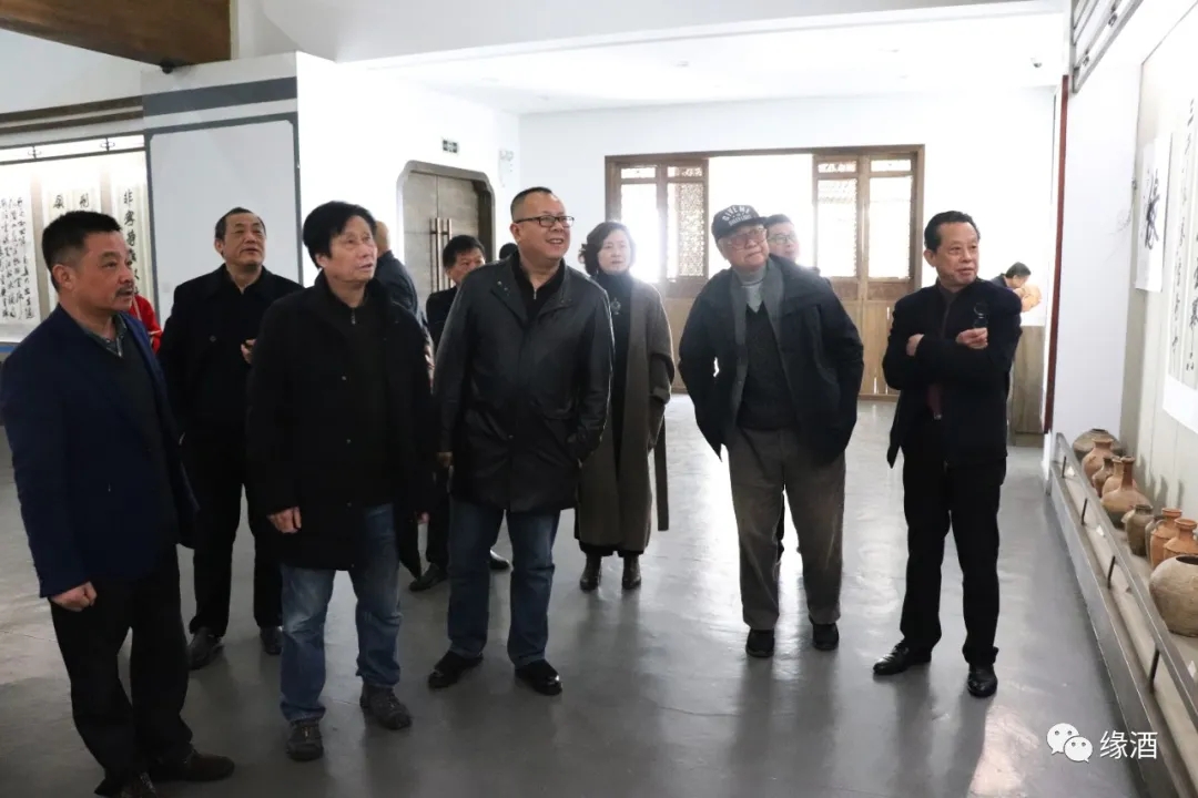 安徽缘酒文化博物馆名誉馆长、安庆市书法家协会原主席余龙生,安徽省书法家协会副主席、缘博馆艺术顾问杜鹏飞,著名书画家、缘博馆艺术顾问唐罡,安庆市书画院原院长、缘博馆艺术顾问房学蓬,复松寺住持、著名书画家、缘博馆艺术顾问释常弘,铜陵市书画院原院长,缘博馆艺术顾问江冰,铜陵市书法家协会主席、缘博馆艺术顾问姚时进应邀观展。安徽缘酒文化博物馆馆长黄晔,常务馆长彭东瑞,中国缘酒品牌运营中心总经理黄灿灿,董事长助理钱颖及嘉宾一同参观了展览。