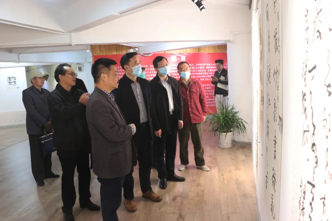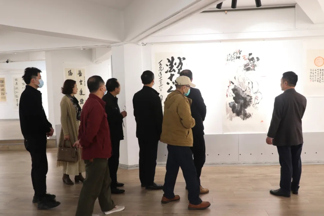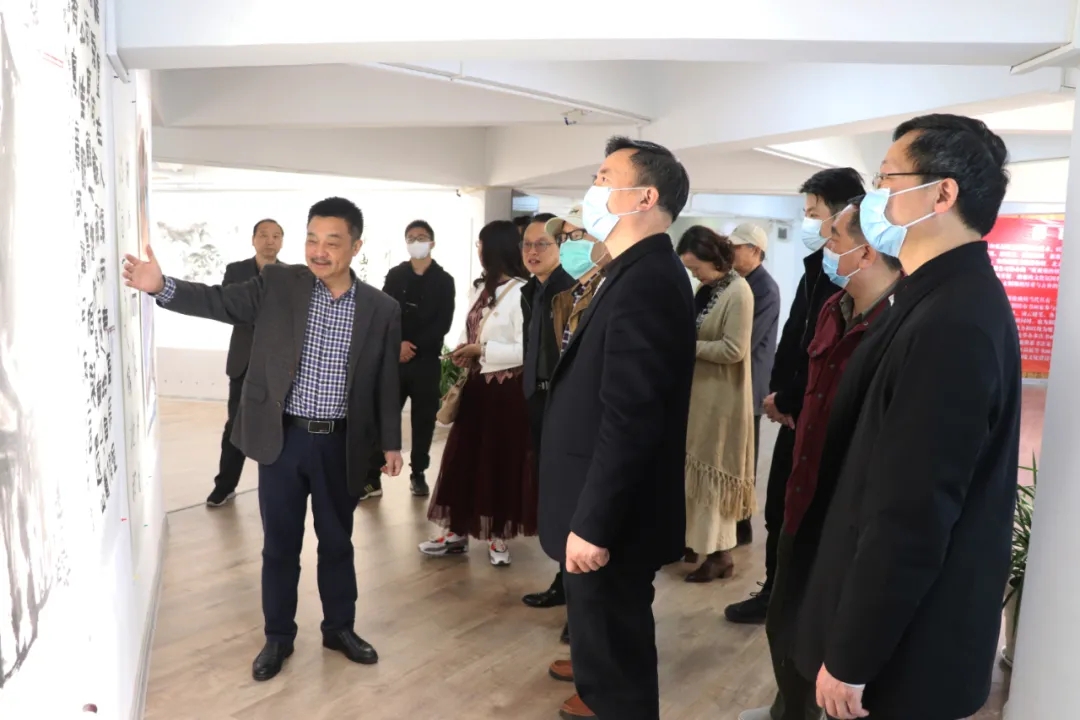 铜陵市委宣传部常务副部长张文林,铜陵市文联主席张进,铜陵市书画院院长储立新,铜陵市美协主席李定,安徽缘酒文化博物馆艺术顾问、原铜陵市书画院院长江冰等领导,在安徽缘酒文化博物馆馆长黄晔,常务副馆长彭东瑞等的陪同下和嘉宾们一同参观展览。 此次展览的名家书画作品,一方面是由安徽缘酒文化博物馆收藏的当代具有一定艺术造诣,颇具影响力和代表性的名人名家书画作品;另一方面为安徽缘酒文化博物馆艺术顾问、特聘馆员和经由宁静斋画廊推介的当地书画名家作品,共计展览作品116幅。 观展前,黄晔馆长就此次书画展览的意义及缘酒博物馆秉承传播诗酒缘文化和诗书画艺术向各位领导做了汇报。