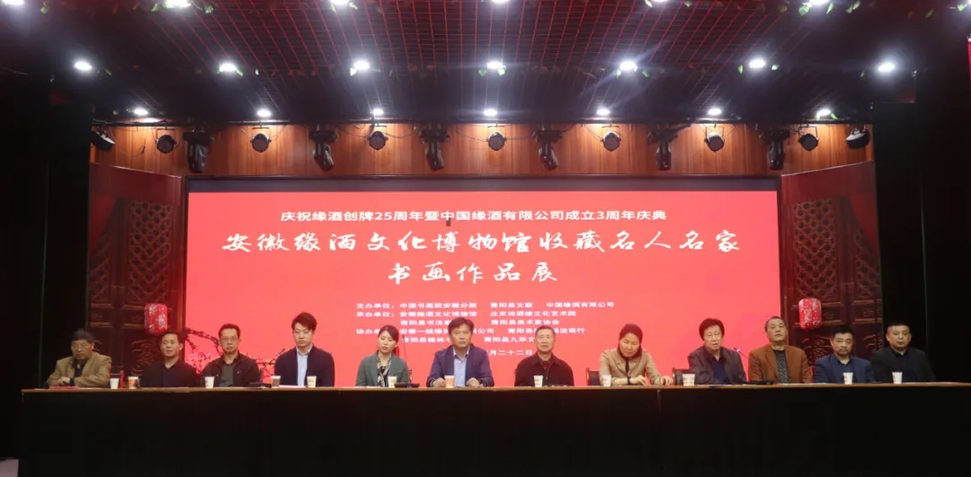 缘聚修身福地,寻美灵秀青阳。为积极培育和践行社会主义核心价值观,传承和弘扬优秀传统文化艺术,在中国共产党成立100周年之际,用书画艺术形式颂扬中华民族的繁荣富强,体现社会主义核心价值观,讴歌党、讴歌祖国、讴歌人民,传播社会正能量。值此缘酒创牌25周年暨中国缘酒有限公司成立3周年之际,4月22日上午,由中国书画院安徽分院、青阳县文联、中国缘酒有限公司主办,安徽缘酒文化博物馆、北京诗酒缘文化艺术院、青阳县书法家协会、青阳县美术家协会承办,安徽一线缘贸易有限公司、青阳县缘酒鸿运商行、青阳县翰林书画院、青阳县九华文化园协办的“庆祝缘酒创牌25周年暨中国缘酒有限公司成立3周年庆典——安徽缘酒文化博物馆收藏名人名家书法作品展”在青阳县九华文化园开展。
