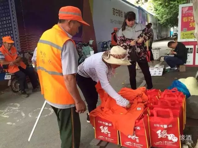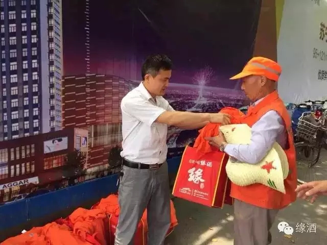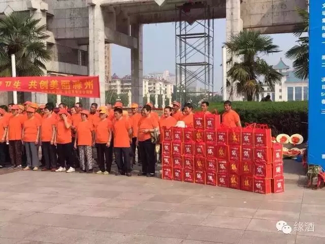 6月19日上午,由安徽缘酒集团滁州办事处、滁州魏明商贸公司联合琅琊区环卫所、洁佳亮保洁公司,滁州市电视台联合举办的“爱护环境卫生 共创美丽滁州”大型公益活动在滁州市人民广场盛大举行。主办方向辛勤劳动的一线环卫工人送去一份缘,一份慰问和祝福。 在端午佳节到来之际,安徽缘酒集团向所有辛勤的环卫工人说声:你们辛苦了,正因为有了你们才让座座城市更加炫丽多彩,因为有了你们才让我们的生活更加健康幸福。